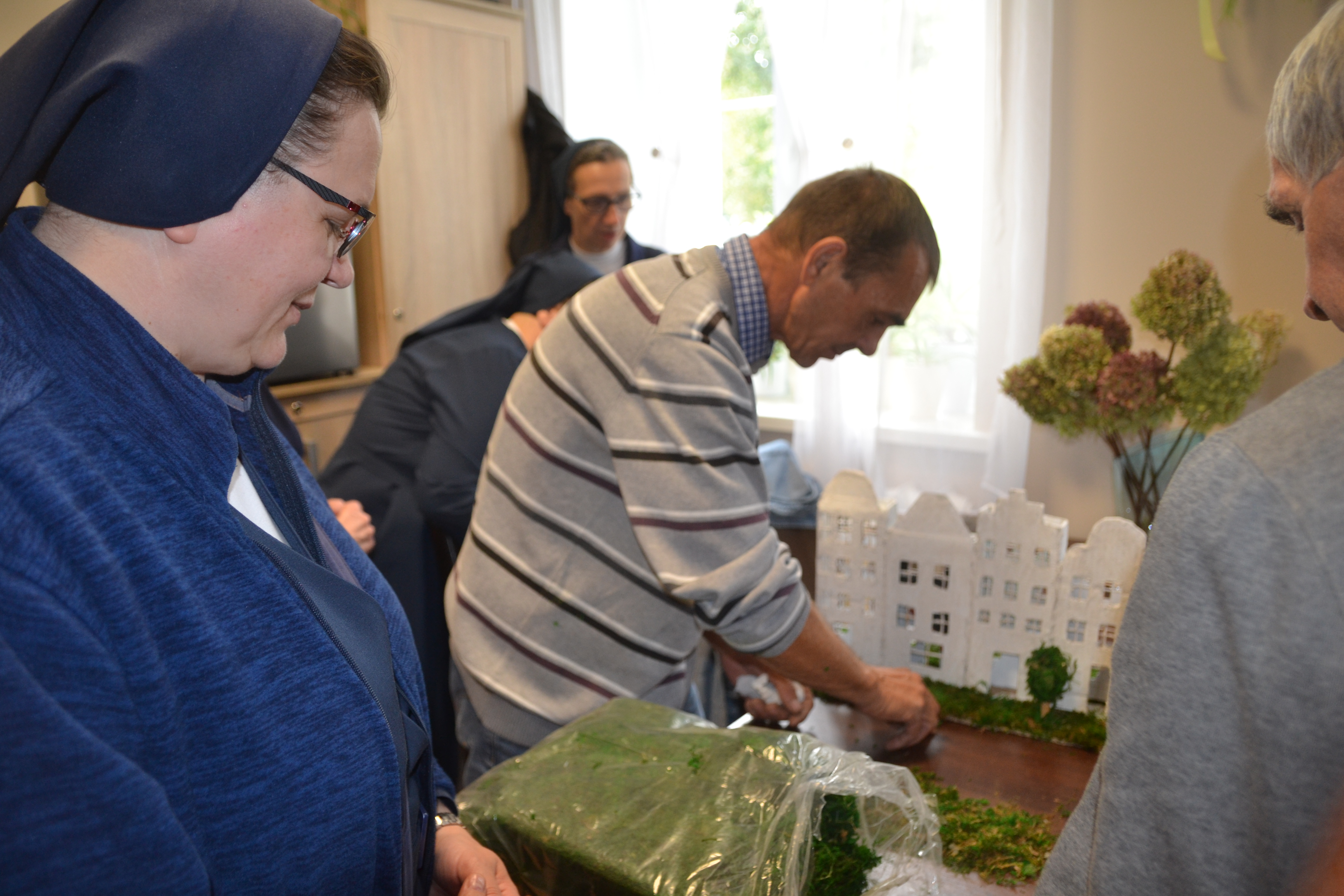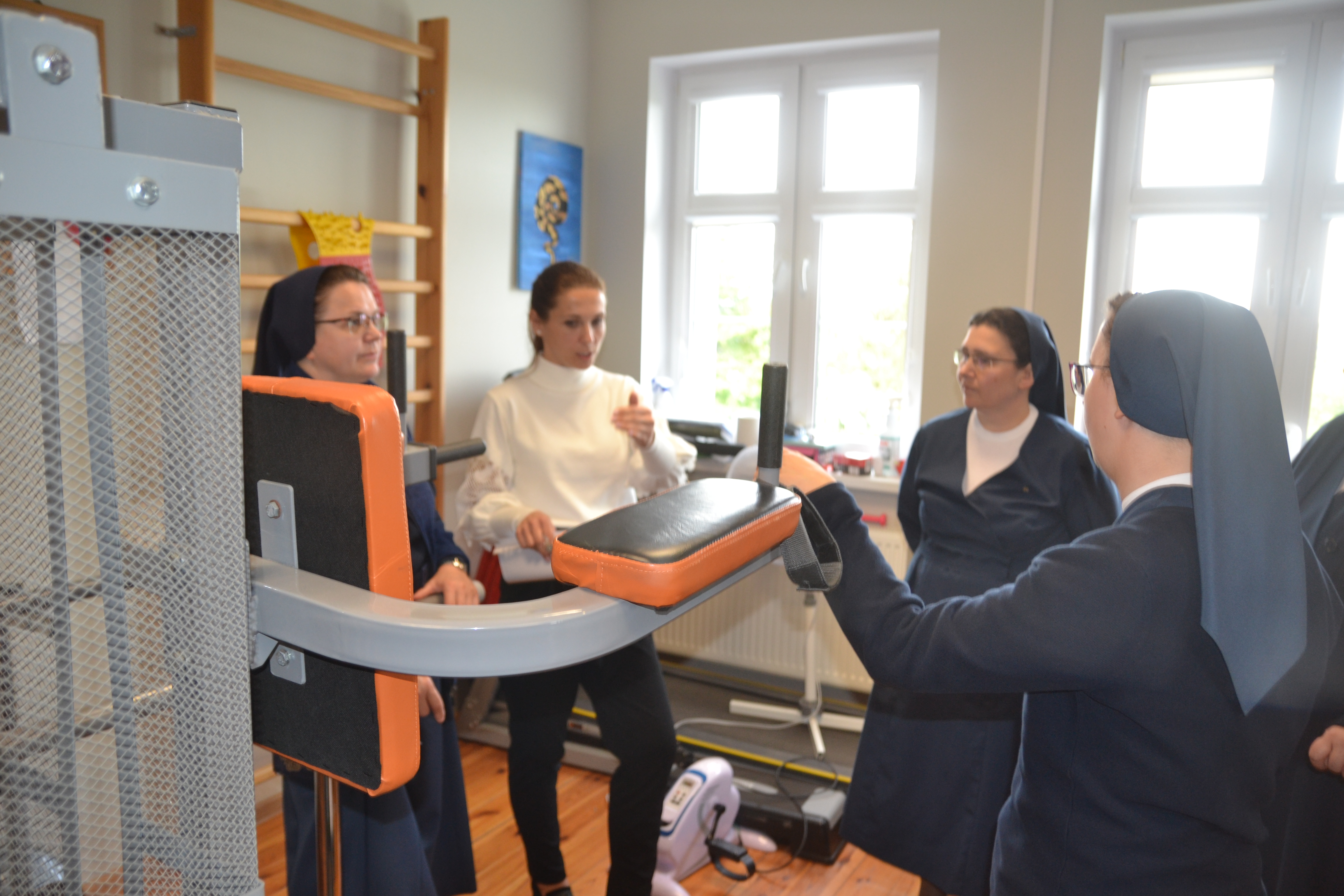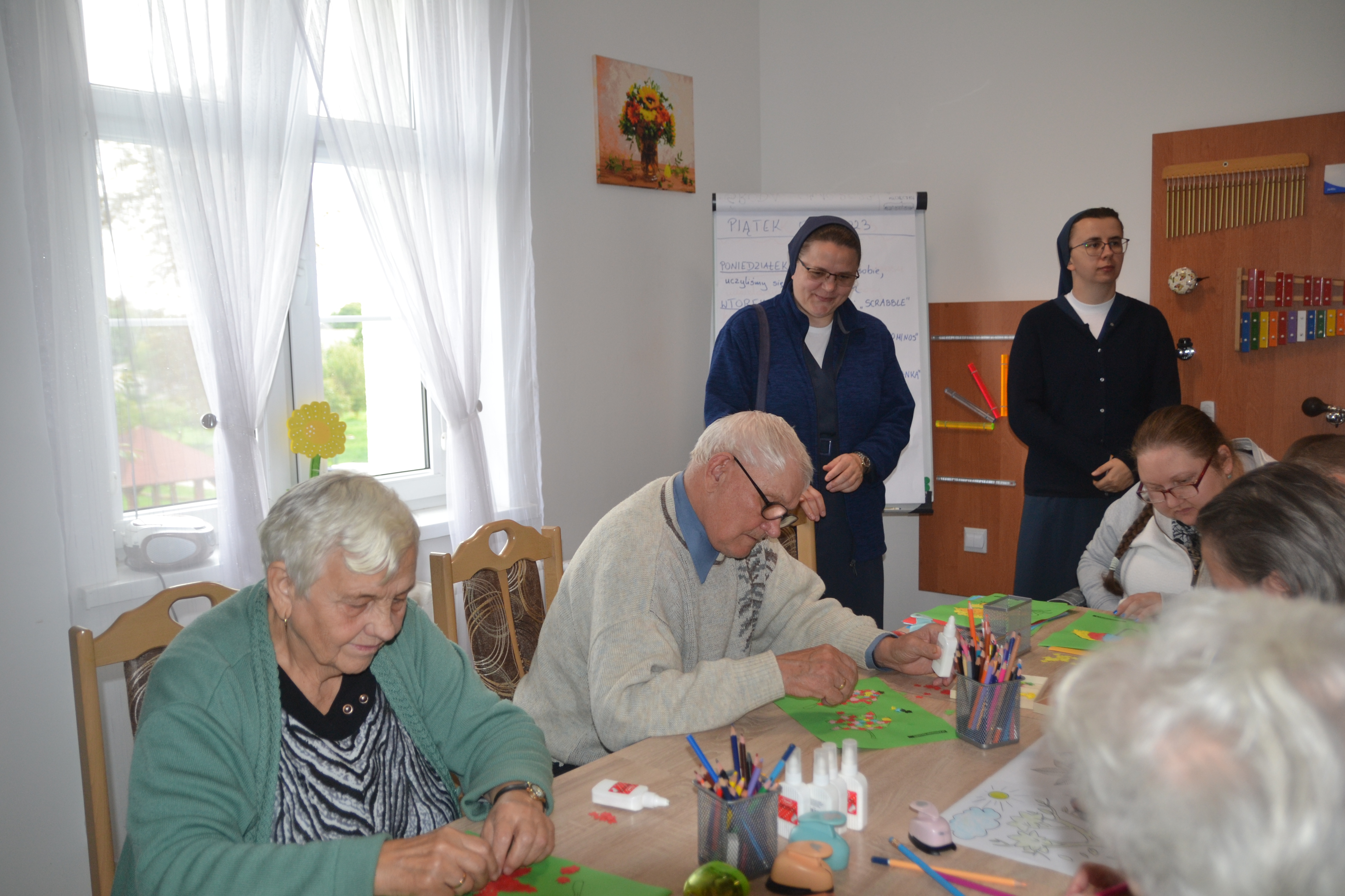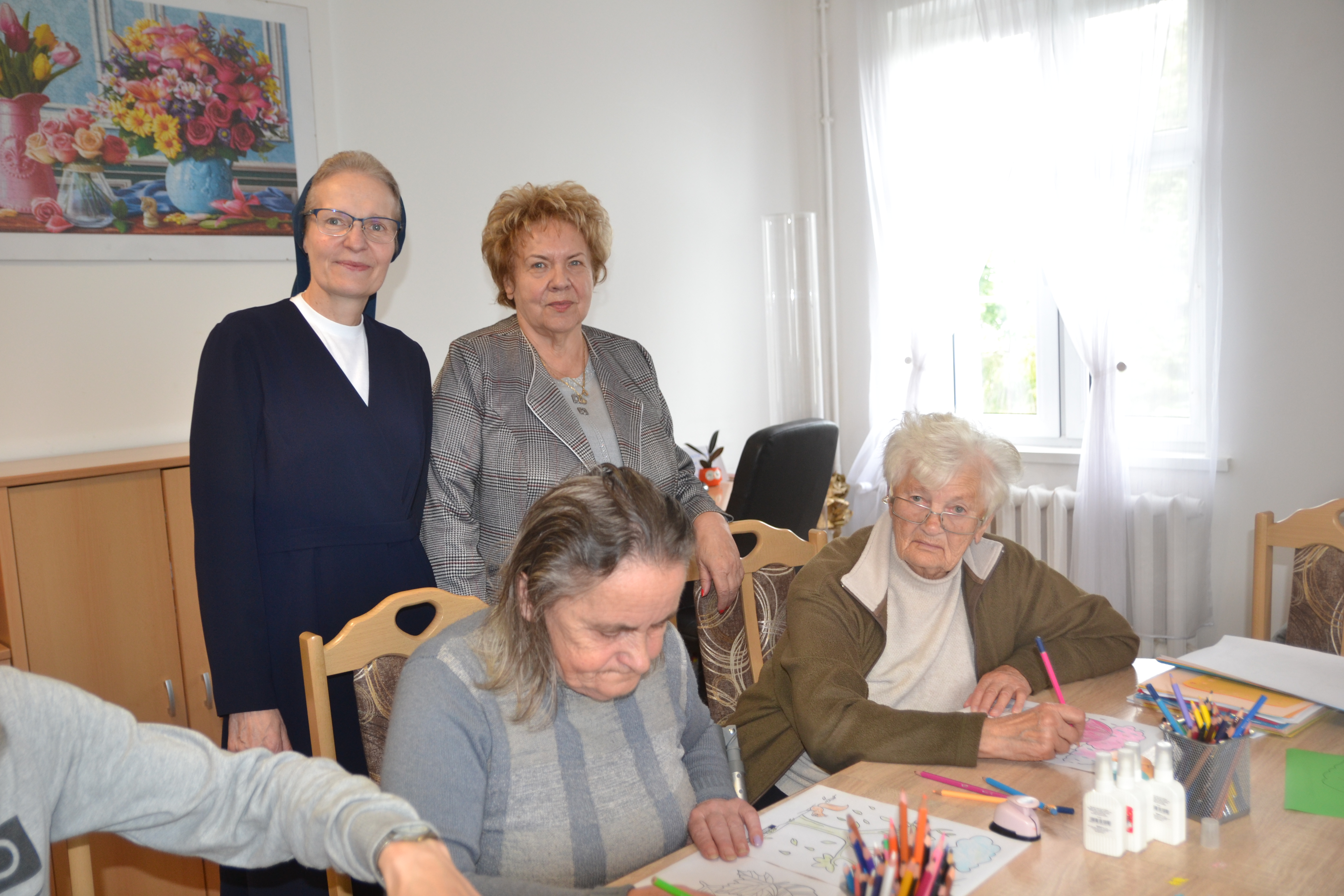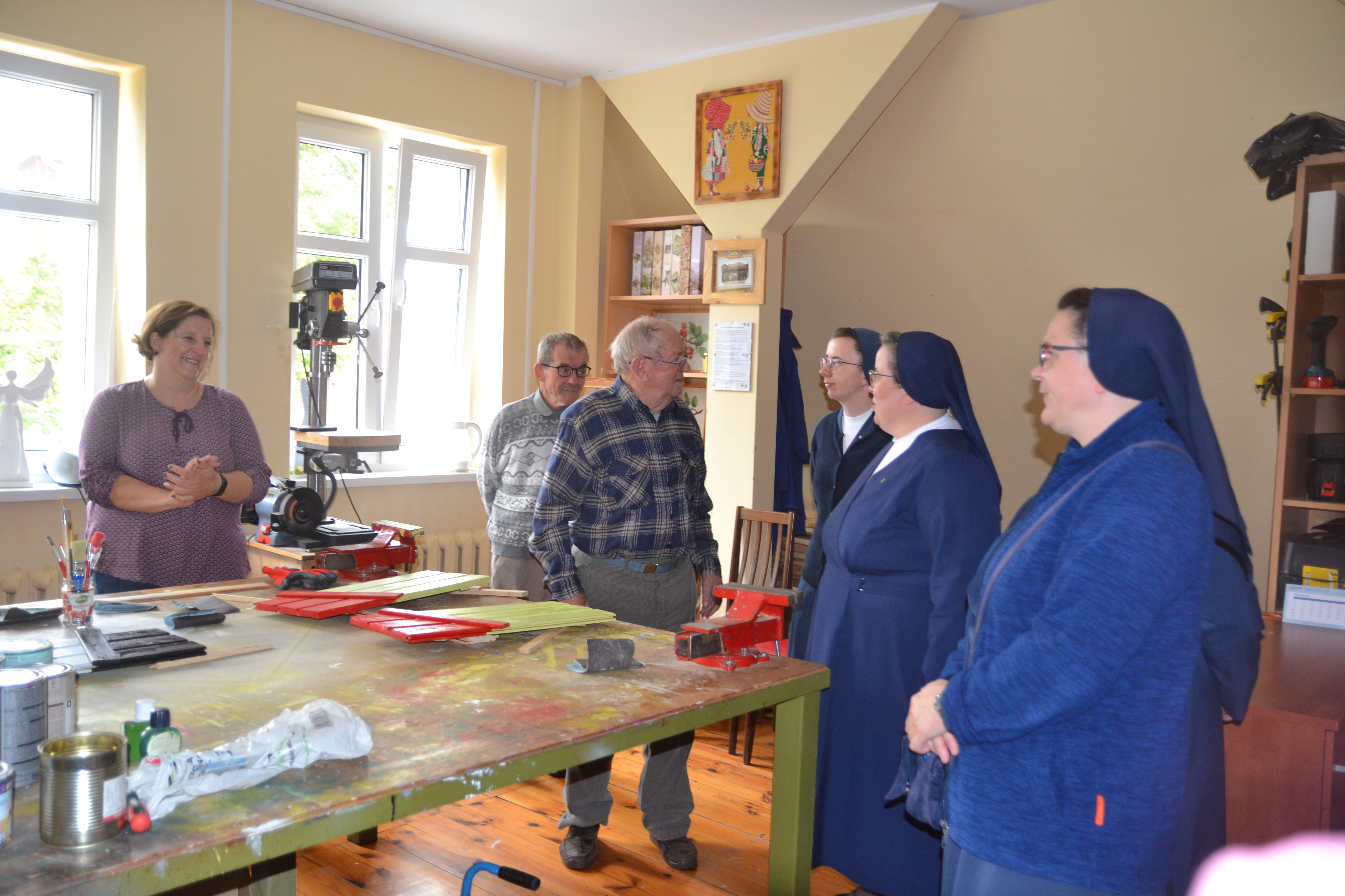 Pani Anna Szyszka po wspólnych rozmowach na temat działalności pro społecznej oraz zasad organizacyjnych w naszym Domu oprowadziła Siostry po Ośrodku, gdzie zwiedziły sale wspierająco- aktywizujące, w których nasi podopieczni spędzają swój codzienny czas. Była to doskonała okazja do rozmów i zapoznania się ze sposobami oraz efektami codziennej pracy wspierająco- aktywizującej w murach naszego Ośrodka. Nie zabrakło serdecznych rozmów z naszymi podopiecznymi i słów uznania efektów codziennej pracy terapeutów i podopiecznych oraz aktywnego spędzania czasu pomimo wszelkich trudności.