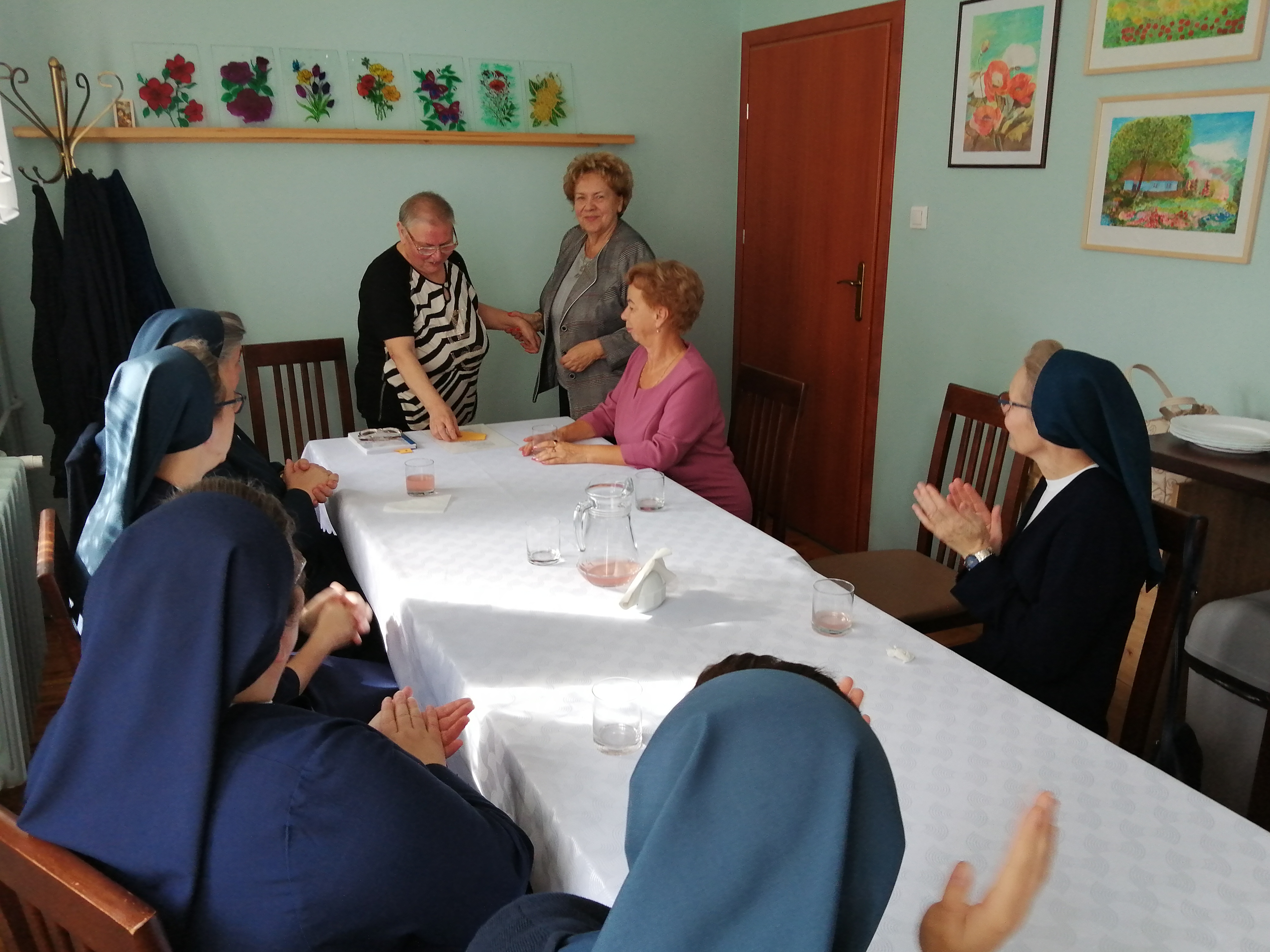Wizytę uwieńczył wspólny posiłek, po którym przyszedł czas na refleksje i podziękowania, W ramach których wręczone zostały upominki, zaś nasza podopieczna Pani Alicja Kryłow uroczyście odczytał swoje autorskie wiersze.
