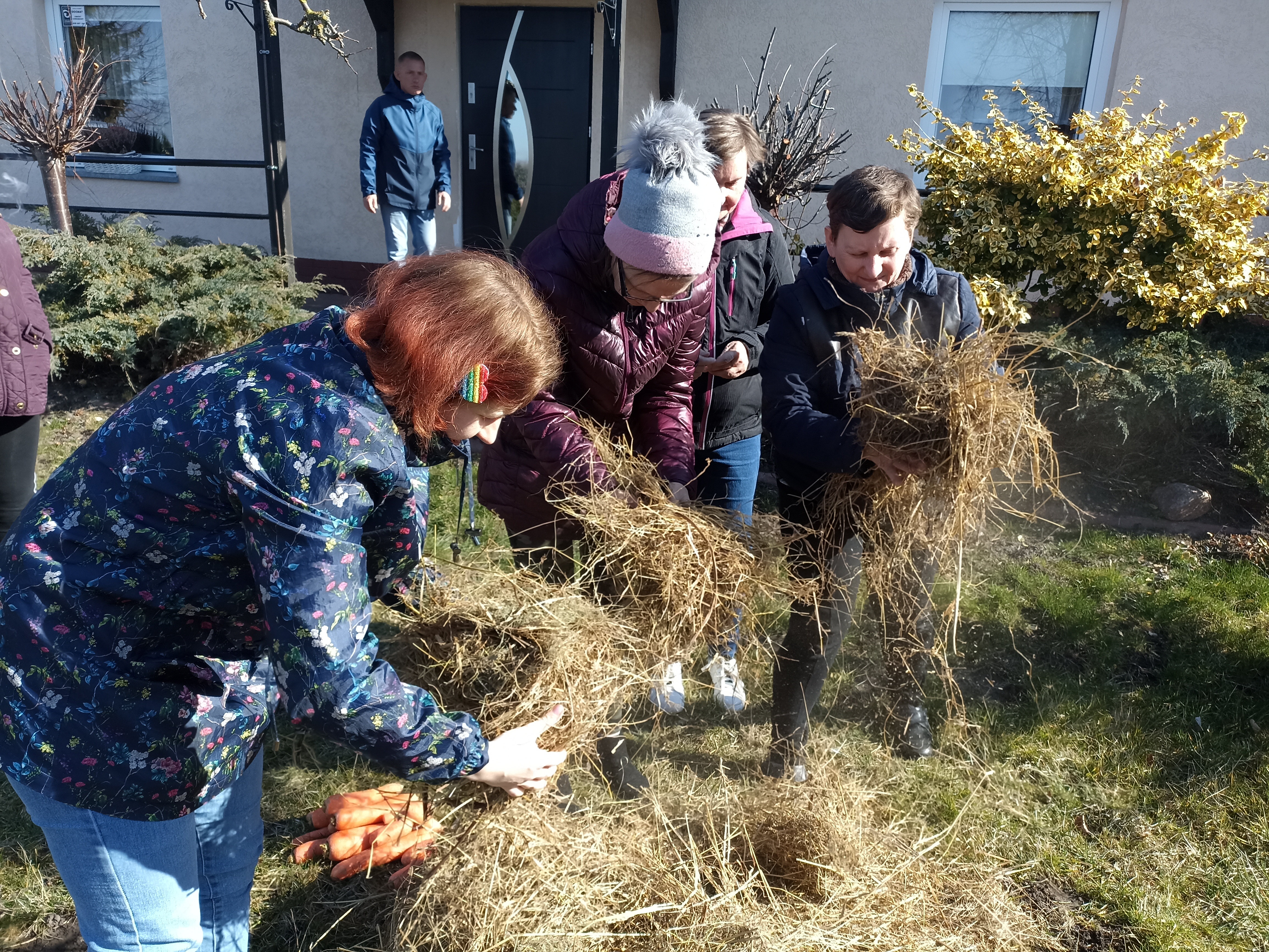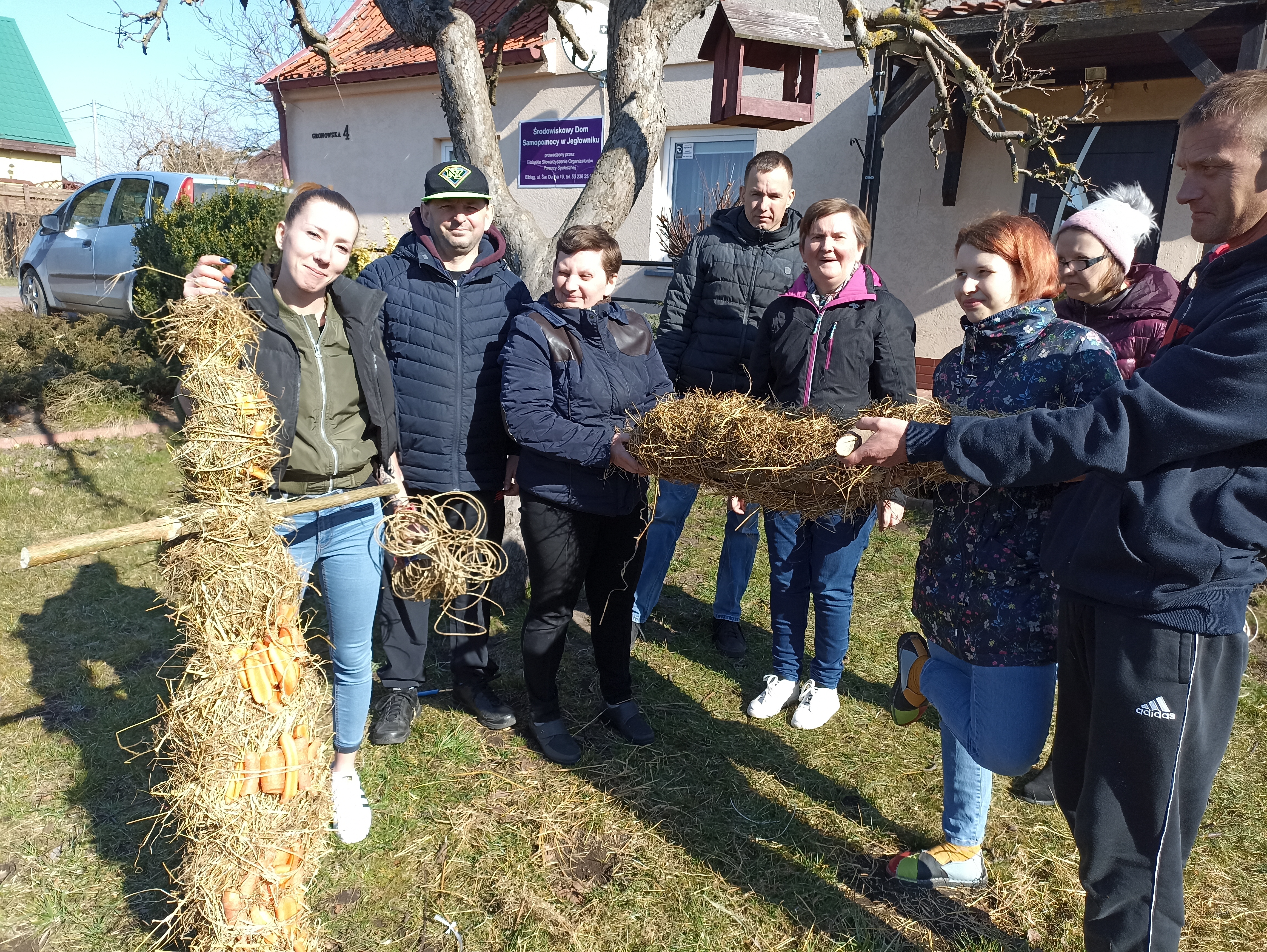 21 marca 2022 r. uczestnicy Środowiskowego Domu Samopomocy w Jegłowniku wraz z kadrą obchodzili Pierwszy Dzień Wiosny. By uczcić ten dzień postanowili stworzyć postać kukły - Marzanny. Tradycyjnie topi się ją bądź spala jako symbol pożegnania zimy oraz gotowości na nadejście cieplejszych dni. Jednakże nasi uczestnicy postanowili pójść krok dalej. Kukła została stworzona z naturalnych materiałów – siana i marchewki, a następnie przeniesiona do miejscowego lasu. Tam została rozdzielona i umieszczona w karmikach dla dzikich zwierząt. Wszystko po to by nie tworzyć dodatkowych śmieci i nie zanieczyszczać środowiska. Następnie uczestnicy podczas zajęć plastycznych nauczyli się rozróżniać wiosenne kwiaty takie jak żonkile, narcyzy czy jaskry. Tego pięknego wiosennego dnia nikomu uśmiech z twarzy nie schodził i wszyscy świetnie się bawili, doskonaląc umiejętności nie tylko plastyczne czy rękodzielnicze ale także współpracy, prowadzenia i podtrzymywania dialogu.