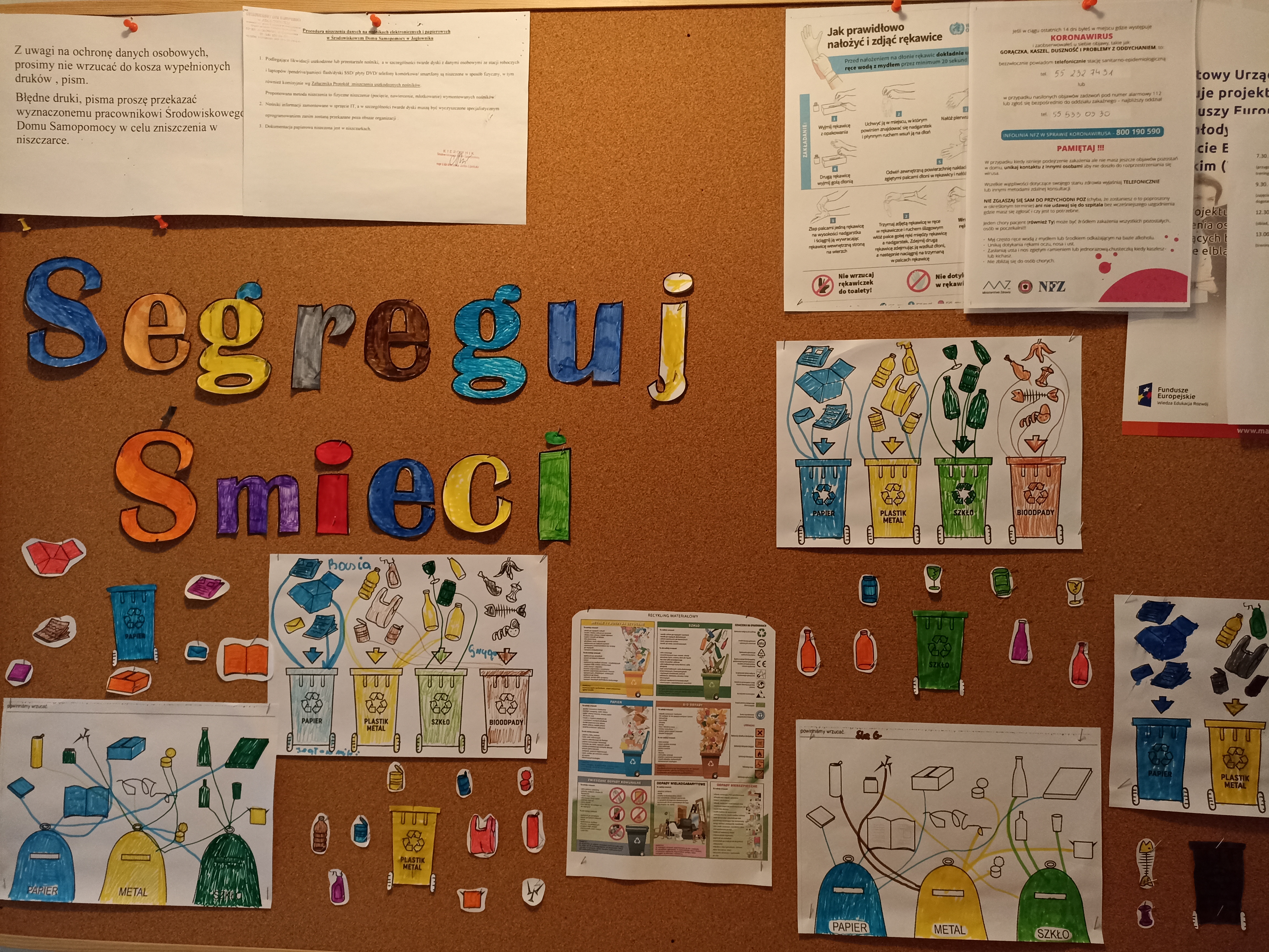 Po takim przygotowaniu z satysfakcją i zapałem wkroczyliśmy do realizowania naszego planu dbania o segregowanie wytwarzanych przez nasz ŚDS śmieci, mając na uwadze pozytywny wpływ tych działań na naszą Planetę.
