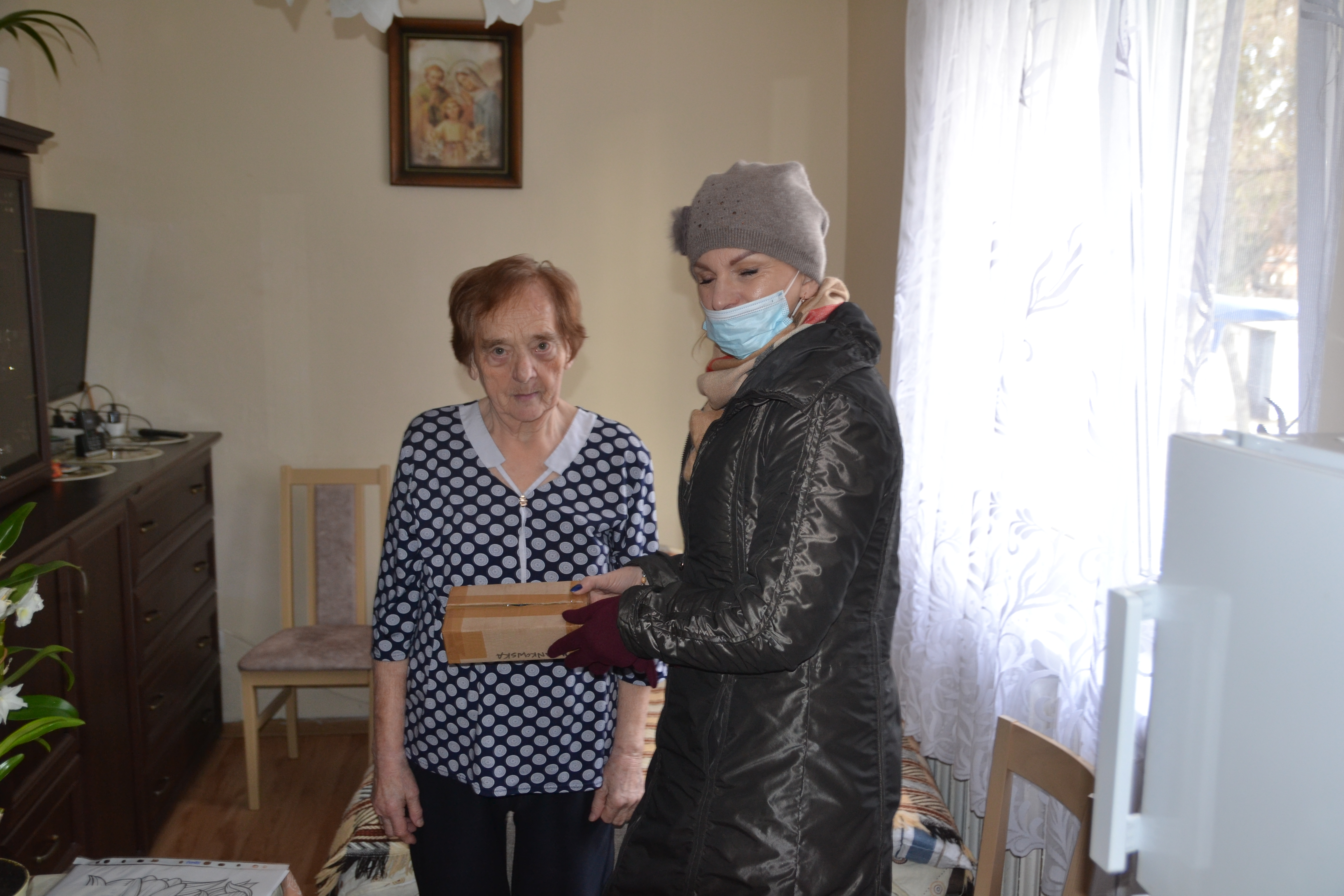 Akcja wręczenia maseczek uczestnikom Środowiskowego Domu Samopomocy w Kwietniewie
