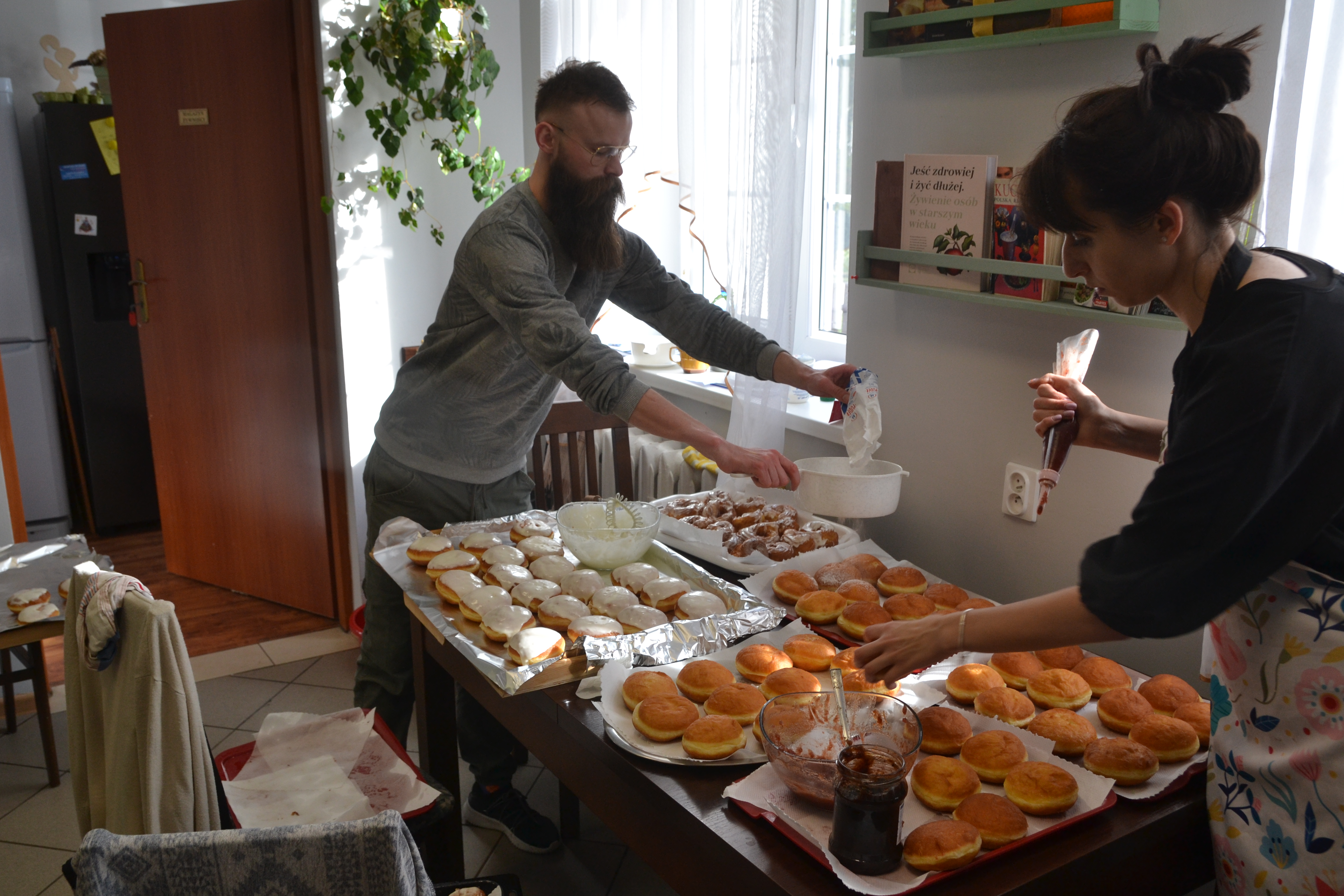 W tłusty czwartek jak co roku w naszym Ośrodku stało się zadość tradycji. Od samego rana w pracowni kulinarnej było gwarno i słodko. Wszyscy biorący udział w zajęciach kulinarnych pracowali ile sił.