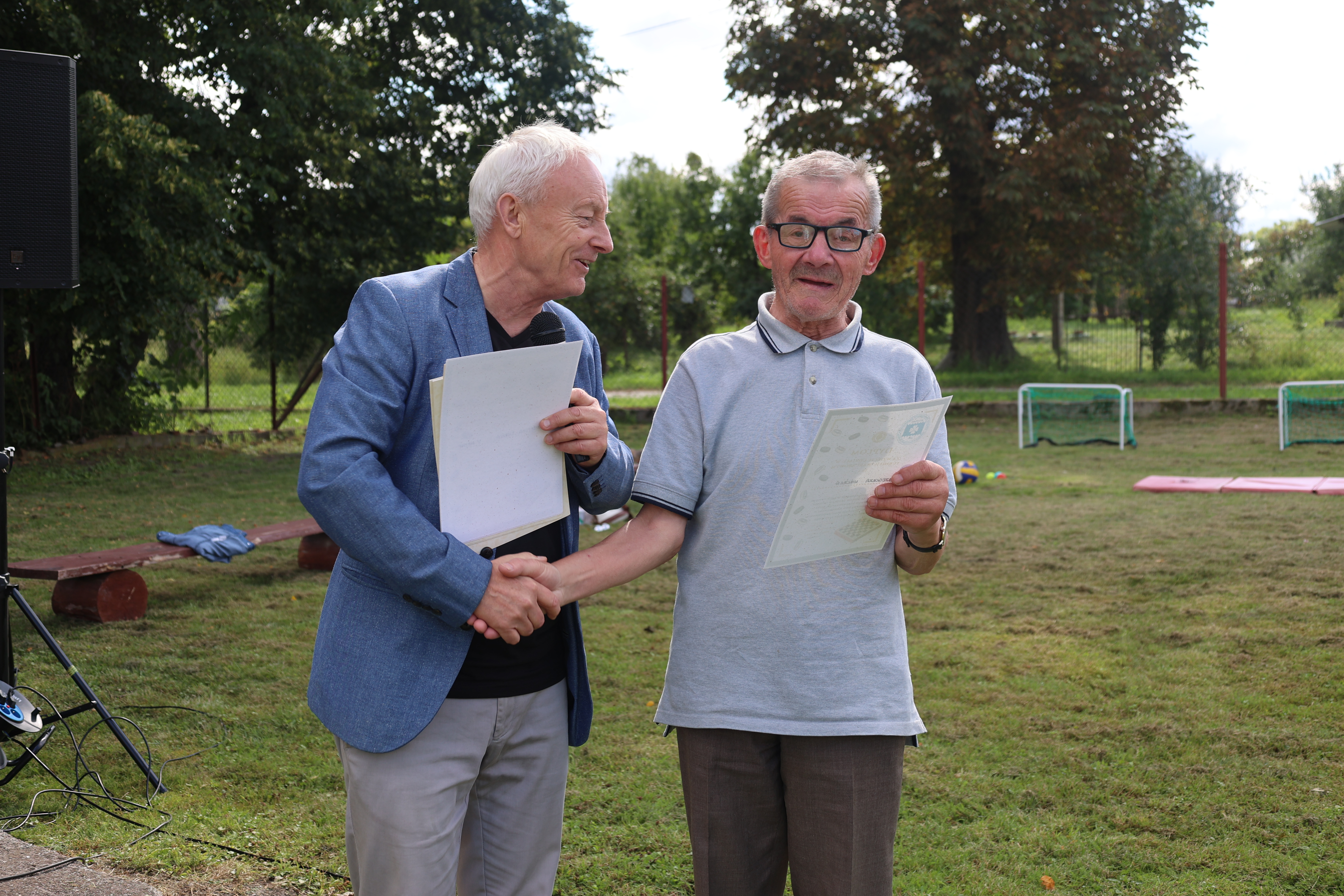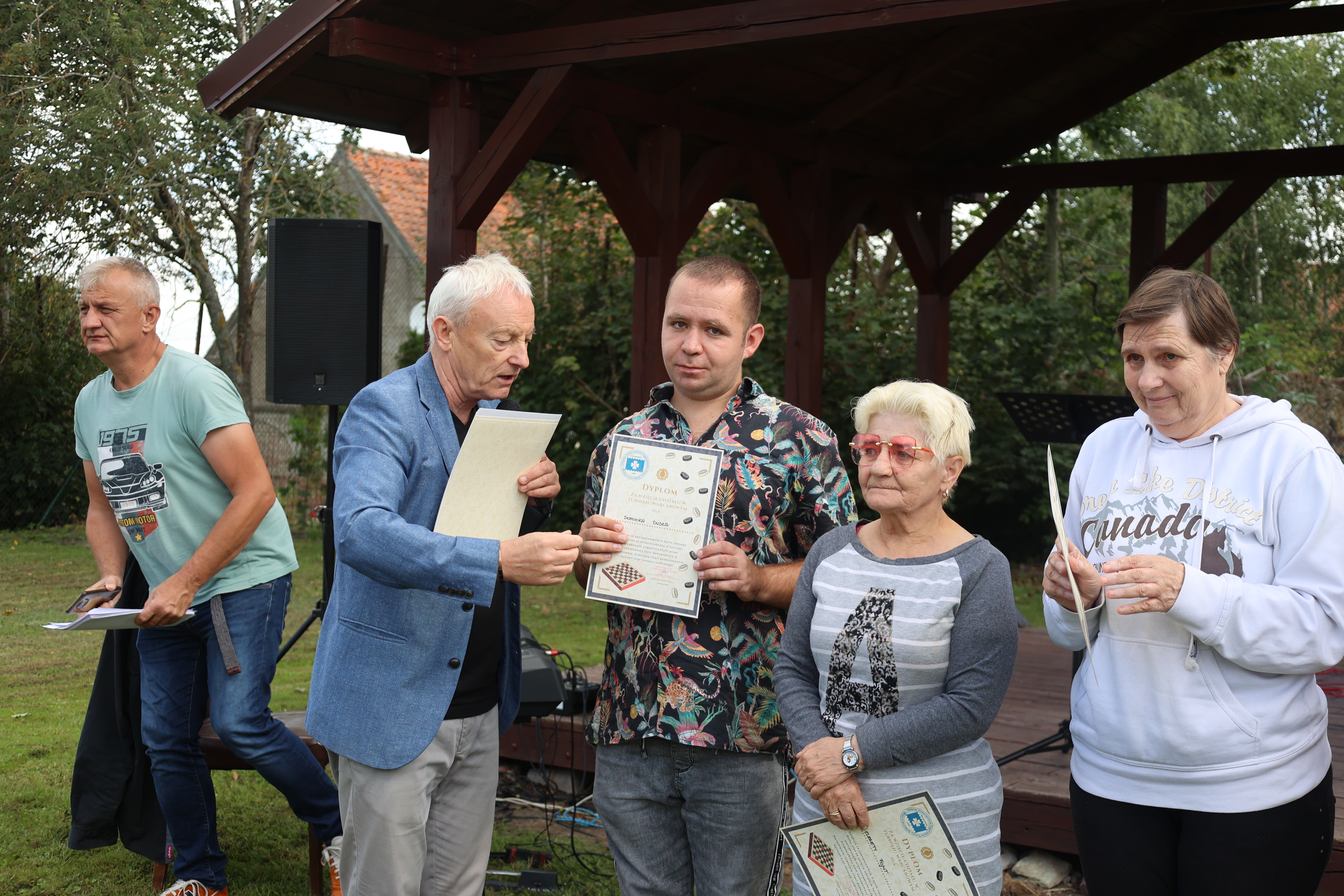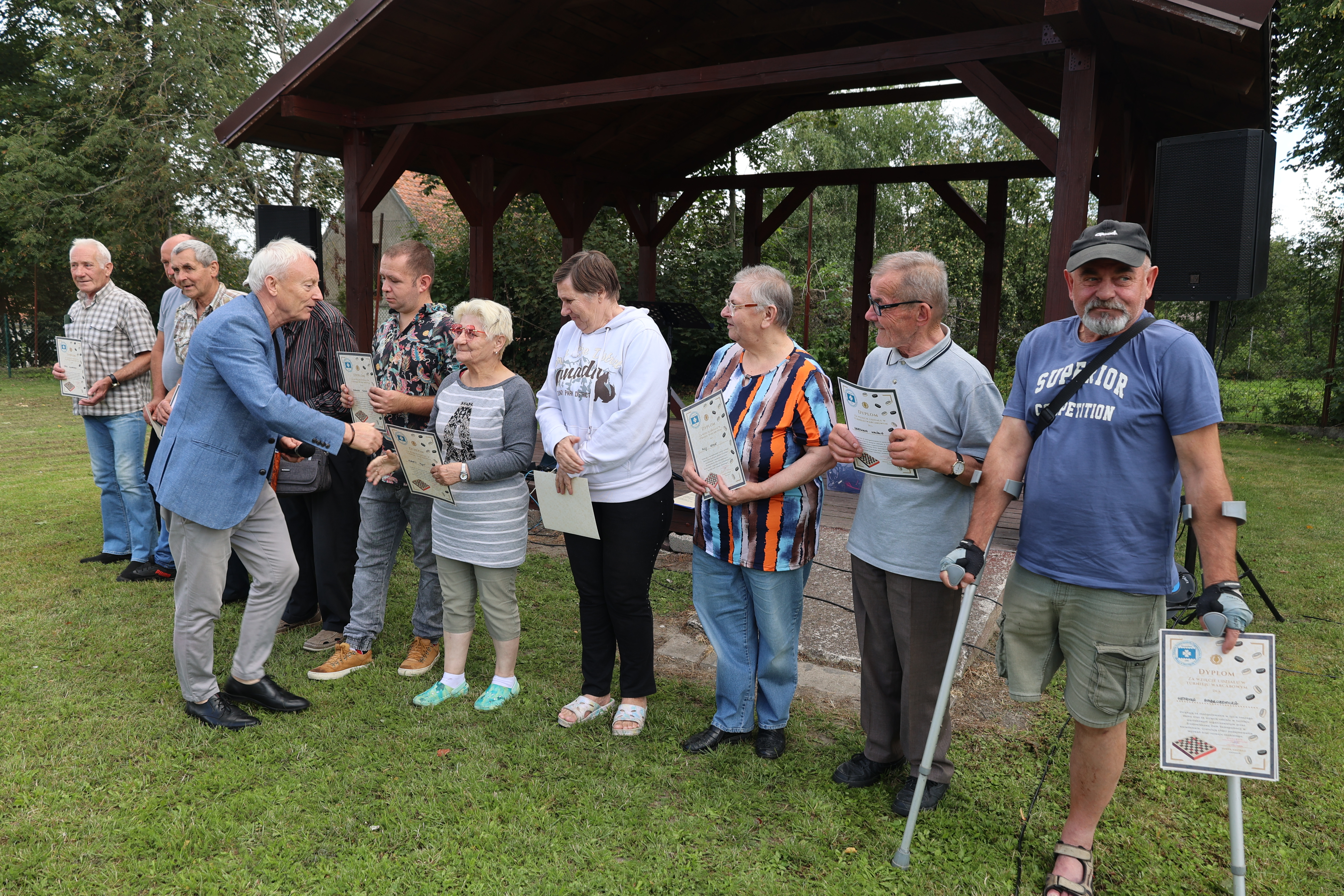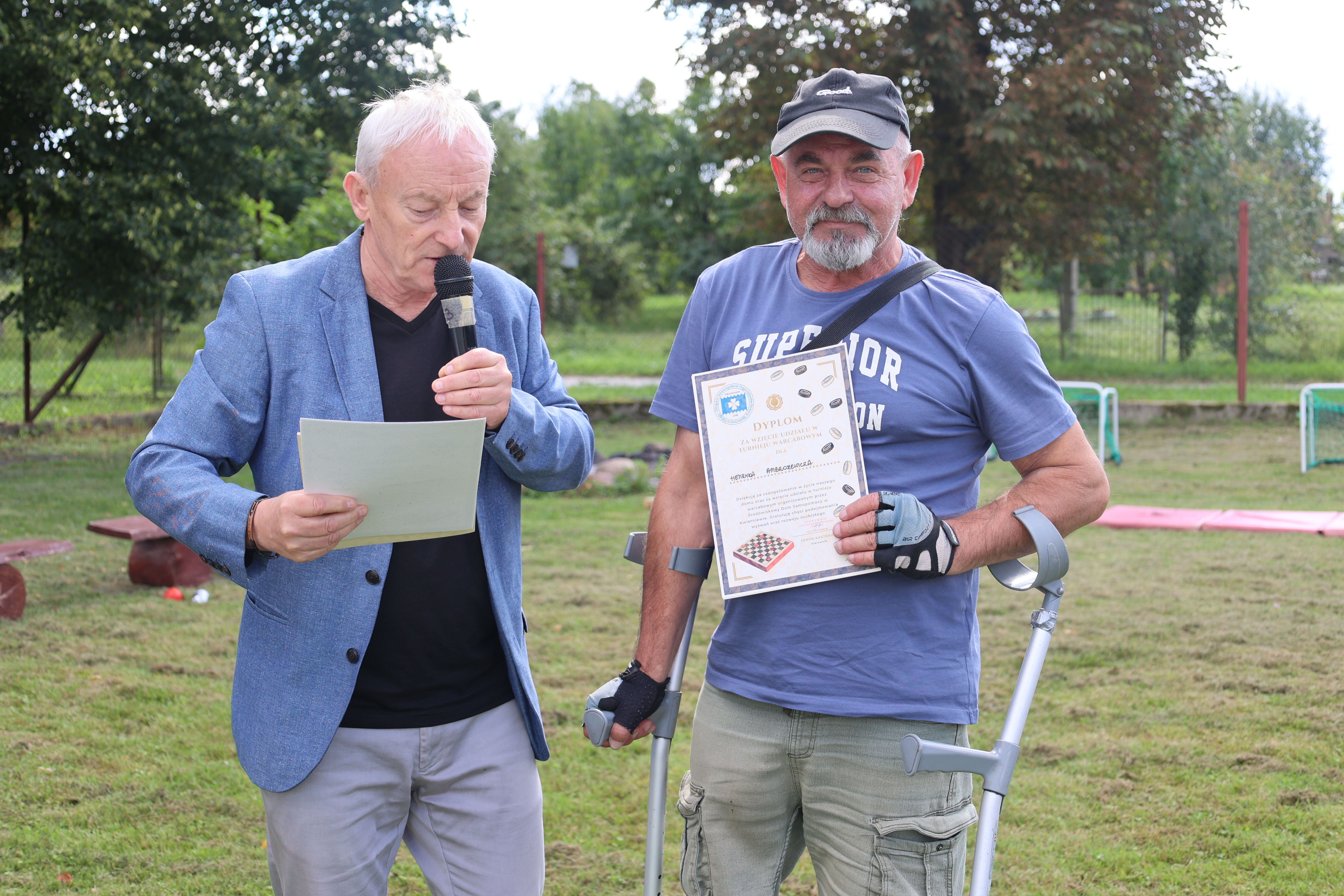 Gra w warcaby uczy cierpliwości, wpływa na koncentrację i pozwala wyciągać logiczne wnioski z podjętych działań, co ma pozytywny wpływ na umiejętności poznawcze. Osoby, biorące udział w turnieju warcabowym losowały wzajemnie swoich współgraczy. Drogą eliminacji wyłoniliśmy najlepszych graczy, którzy w ostatnich pojedynkach walczyli przeciwko sobie. Wszyscy, którzy wzięli udział w rozgrywce, otrzymali pamiątkowe dyplomy z rąk Kierownika Środowiskowego Domu Samopomocy w Kwietniewie Pana Zenona Kastrau oraz serdeczne gratulacje. Podsumowanie turnieju warcabowego odbyło się podczas zabawy integracyjnej na boisku przy ŚDS, a wydarzeniu przygrywał i śpiewał Zespół Muzyczny Kwietniaki z naszego Ośrodka. Wszyscy zebrani usłyszeli słowa zadowolenia i motywacji do podejmowania dalszych aktywności. Tym sposobem poznaliśmy zwycięzców turnieju- miejsce I zajął pan Krzysztof Słowiński, II miejsce otrzymał pan Marek Chilmanowicz, III miejsce trafiło do pana Roberta Błaszkiewicza ,a na miejscu IV uplasował się pan Ryszard Oleszak .