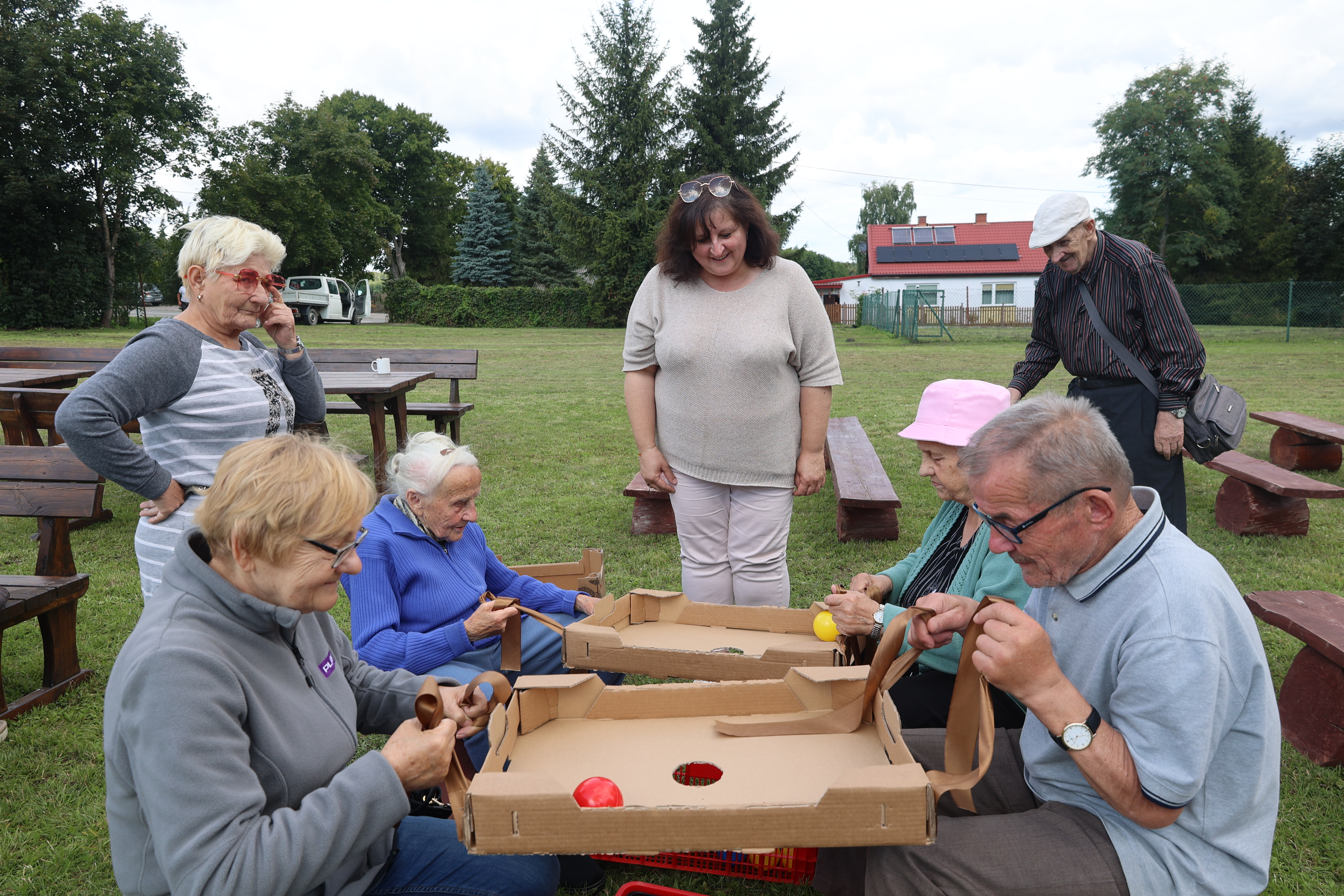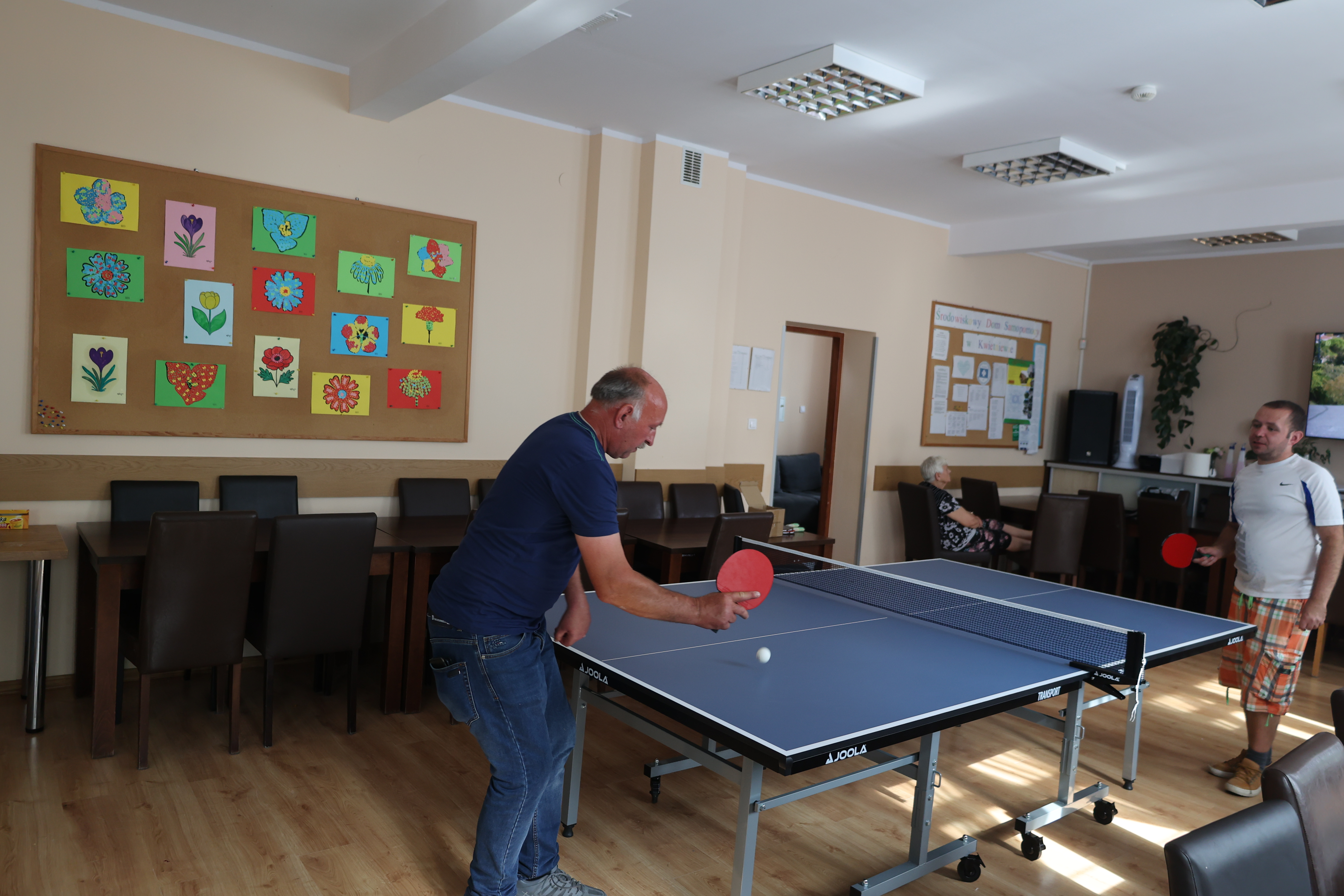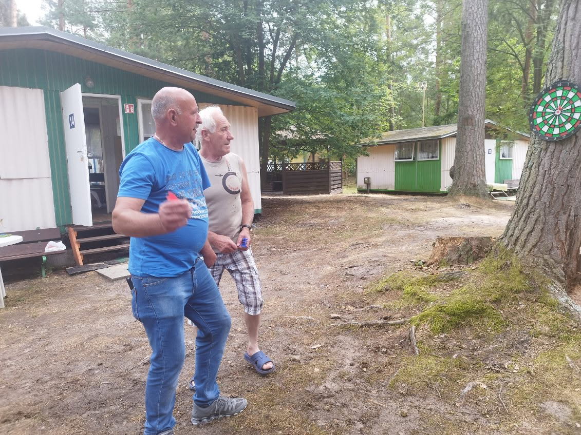 Na terenie Ośrodka jest wiele atrakcji sportowych- gramy w siatkówkę, tenisa stołowego i w lotki. Codziennie bierzemy udział w porannej gimnastyce na świeżym powietrzu. W ramach treningu aktywności twórczej wykonaliśmy stroiki o tematyce marynistycznej. W chwilach odpoczynku korzystamy z dostępnych w świetlicy Ośrodka gier stolikowych i puzzli.