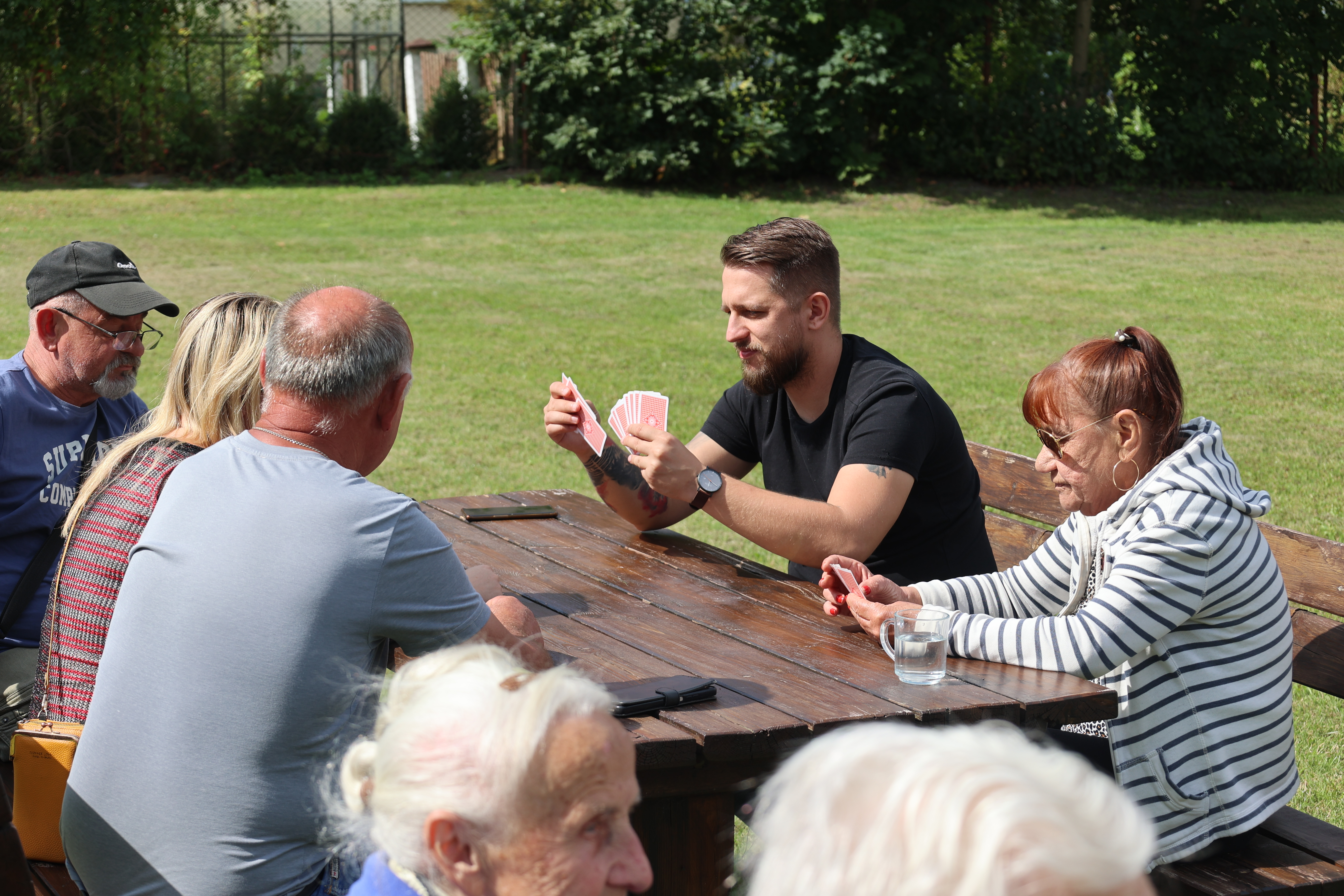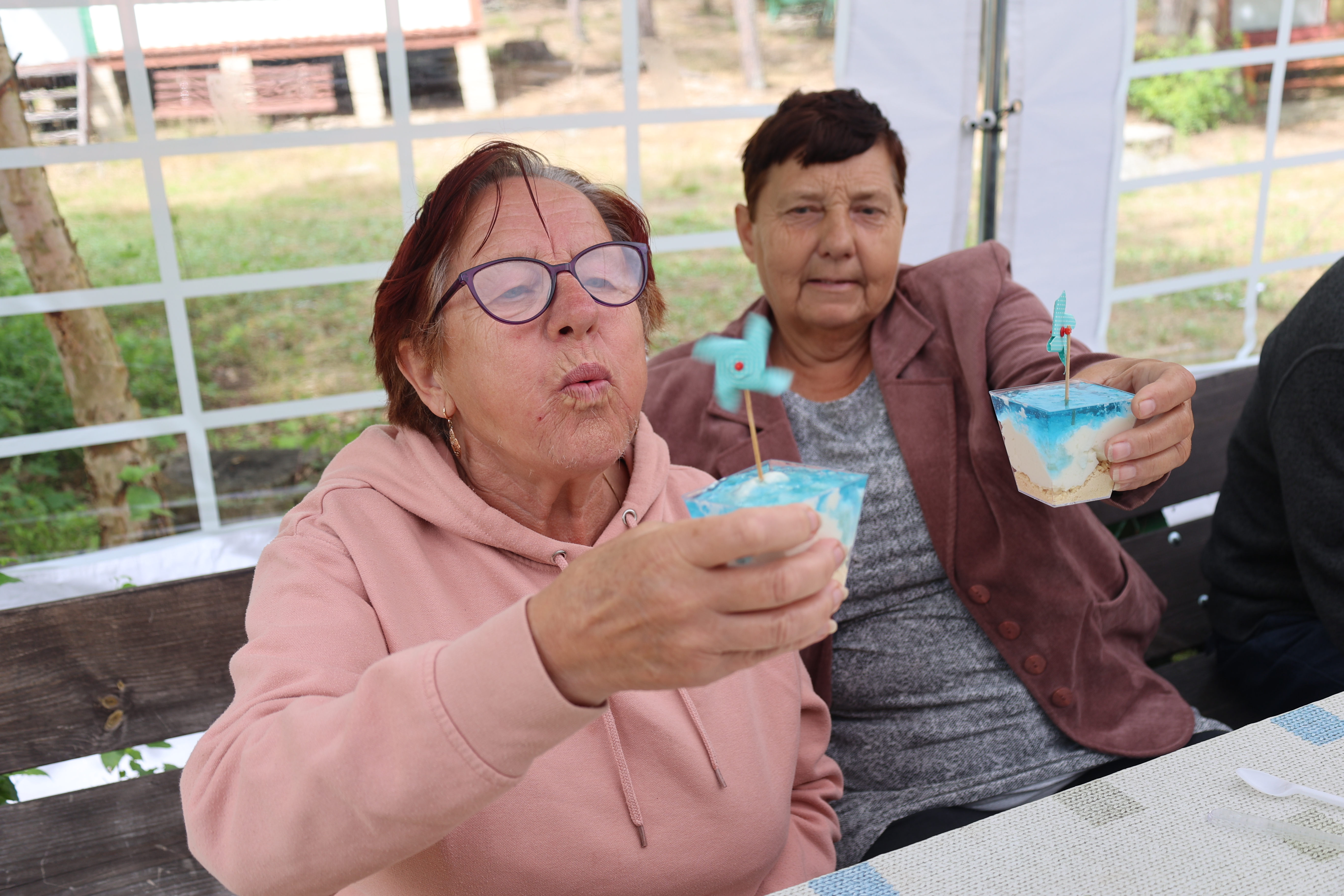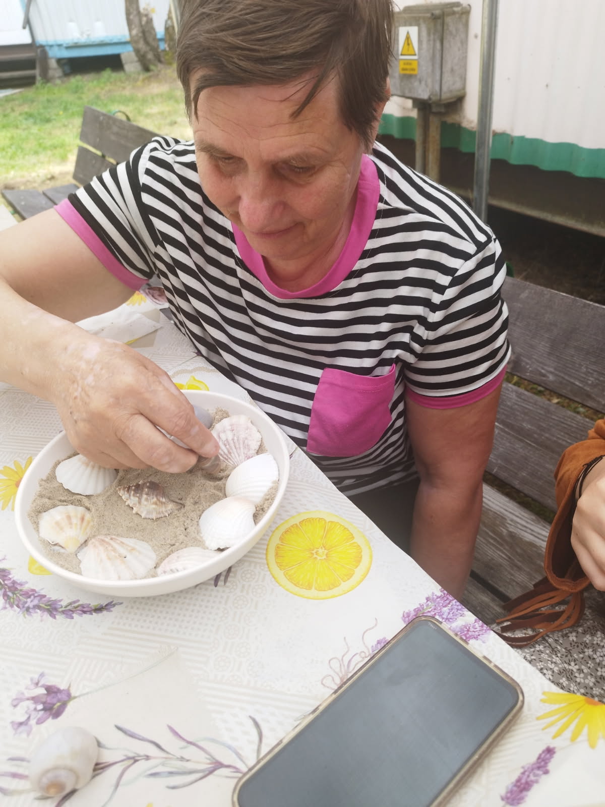 Na terenie Ośrodka jest wiele atrakcji sportowych- gramy w siatkówkę, tenisa stołowego i w lotki. Codziennie bierzemy udział w porannej gimnastyce na świeżym powietrzu. W ramach treningu aktywności twórczej wykonaliśmy stroiki o tematyce marynistycznej. W chwilach odpoczynku korzystamy z dostępnych w świetlicy Ośrodka gier stolikowych i puzzli.