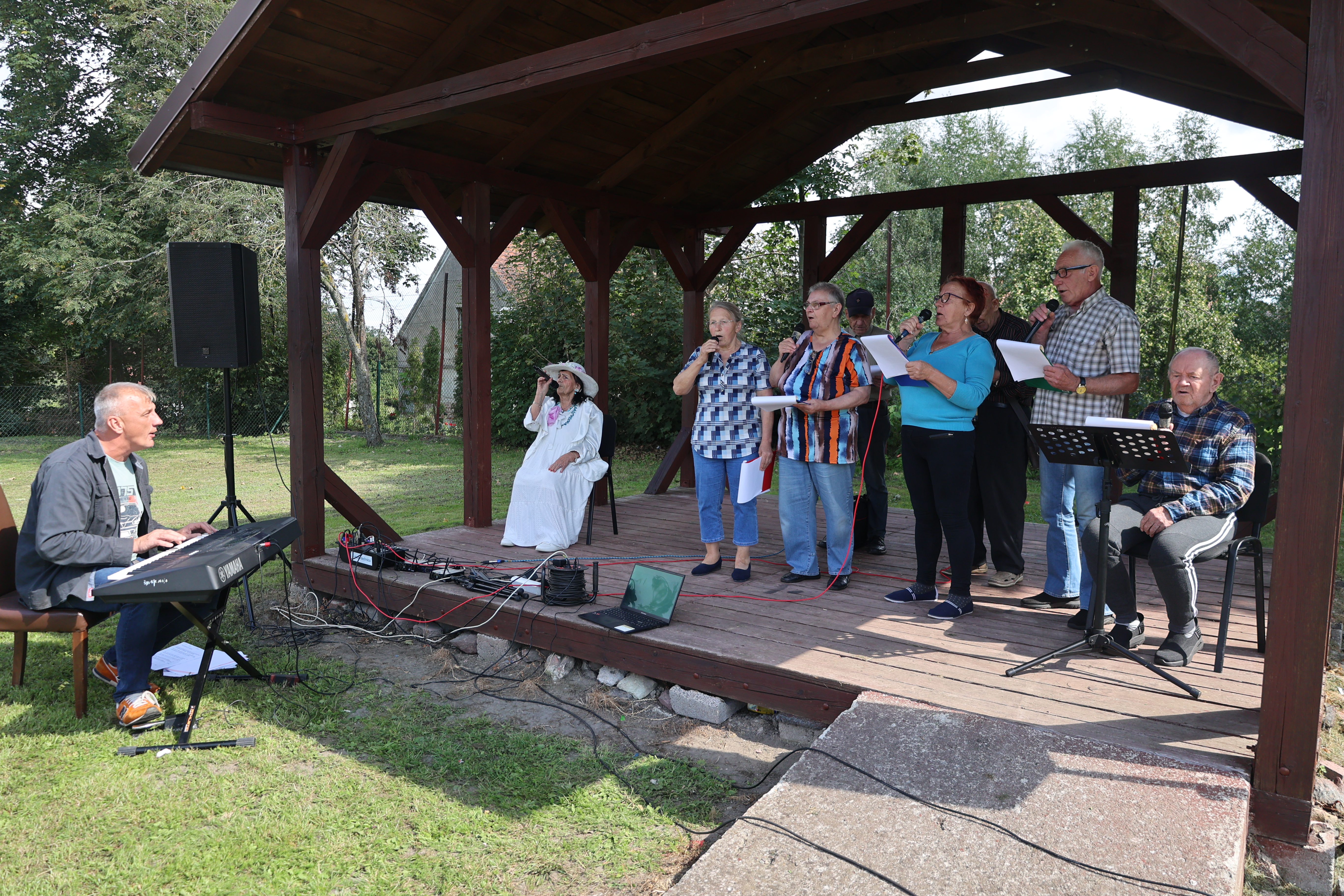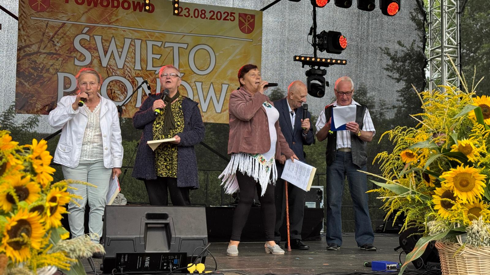 Nie zabrakło bogato strojonych roślinnością stoisk z pożywieniem z plonów, przetworów mięsnych i owoców, które stanowiły wystawę osiągnięć lokalnych rolników. Religijnego charakteru wydarzenia nadała uroczysta Msza Święta Dożynkowa, mająca charakter dziękczynny za uzyskane plony. Dożynki Gminne zakończył festyn, podczas którego zaprezentował się nasz niezawodny Zespół Muzyczny Kwietniaki, w skład którego wchodzą podopieczni naszego ŚDS przy akompaniamencie pana Piotra Bindera. Piosenki biesiadne przygotowane przez naszych podopiecznych doskonale wpisały się w tematykę i klimat tegorocznych Dożynek i zostały doskonale przyjęte przez publiczność.